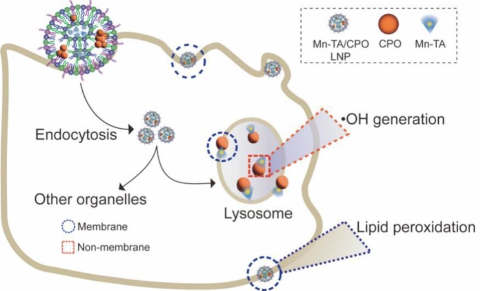 超小过氧化钙纳米颗粒与脂质分子自组装形成脂质纳米平台,实现对肿瘤细胞不同亚细胞结构的精准协同打击。该平台利用过…